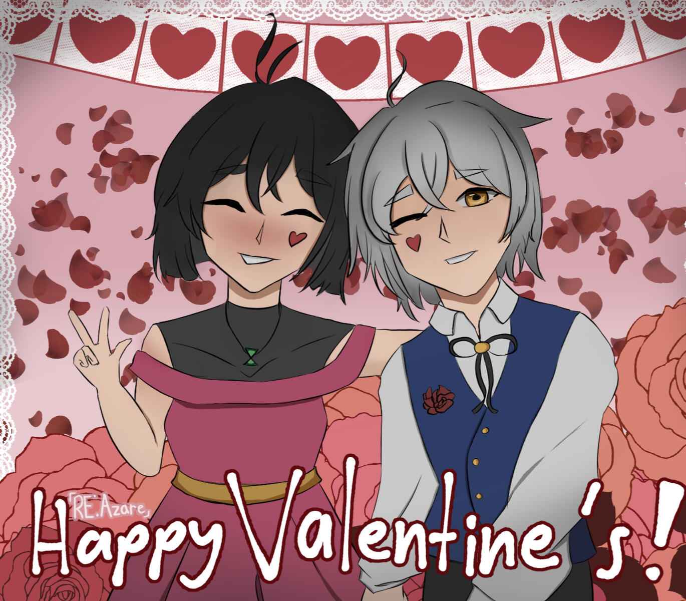 We are like siblings, just together no matter where we went. During our Valentine's holiday party, Azare did not like talking to people, and instead got his hands on the flying rose petals that seemed endless! This was the time Creator taught us the importance of love and created a Valentine's event space for the both of us to experience with other people!Creator took this picture of us, then remade it into digital art to lessen the space needed as an asset.